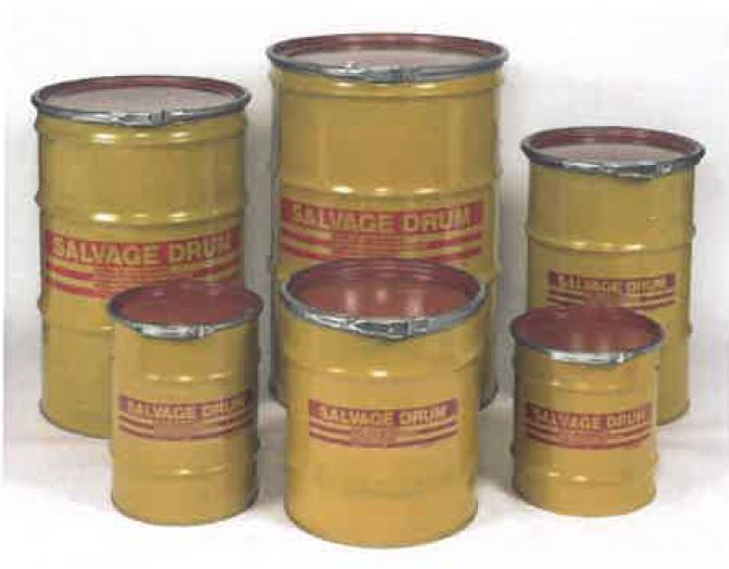 Pour la sécurité du stockage et du transport de vos fûts endommagés de 220 litres, nous vous proposons un surfût acier de 322 litres de capacité, homologué UN pour les produits solides et liquides.